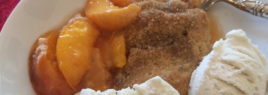 Fresh Peach Cobbler with Cinnamon and Vanilla Bean Ice Cream